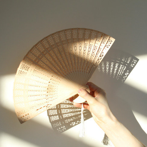 These fans are made of sandalwood, and fold up to fit in your purse.