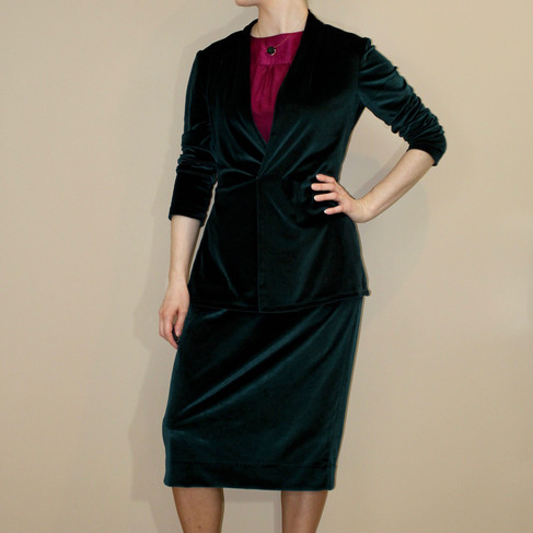 I love the Alexander McQueen outfit she wore to celebrate her first child, George. The undulating front ruffle inspired my handmade magenta skirt suit. I wore it to celebrate my 10th wedding anniversary.